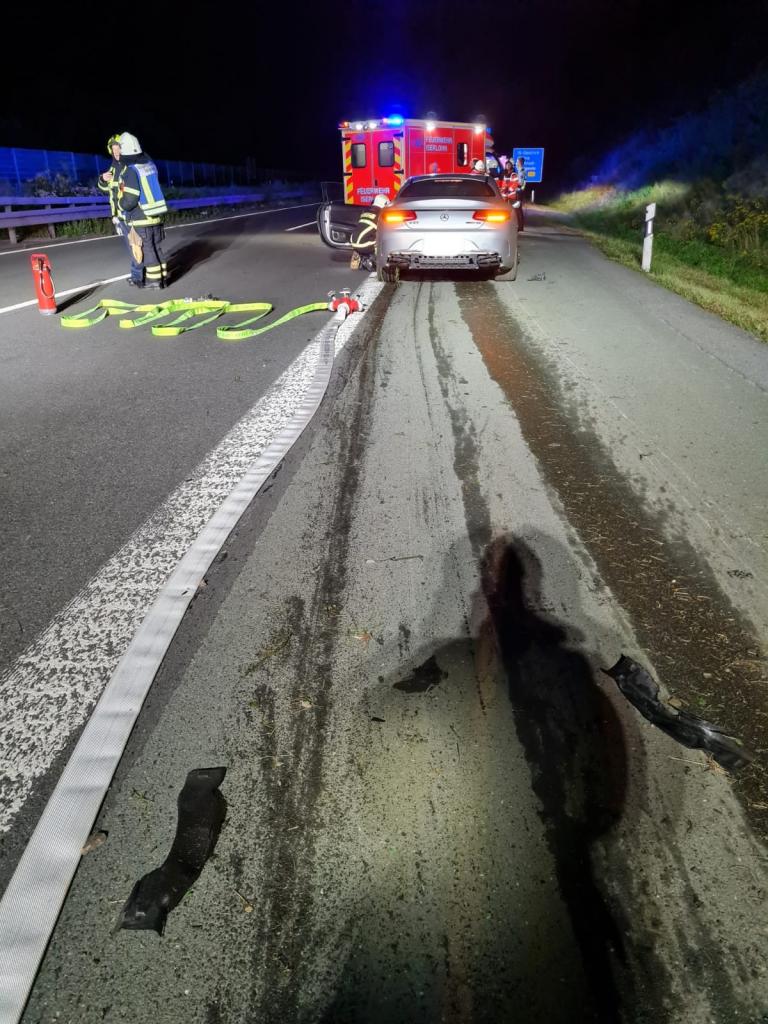 Die Löschgruppe Letmathe, Oestrich und der Rüstwagen der Berufsfeuerwehr wurden mit dem B-Dienst und dem Rettungsdienst auf die BAB46 Fahrtrichtung Hagen alarmiert. Über eCall wurde der Feuerwehr ein Verkehrsunfall gemeldet. Zum Fahrer bestand zu diesem Zeitpunkt kein Kontakt. Bei Eintreffen stellte sich heraus, dass es vor dem Rastplatz Heimberg zu einem Alleinunfall eines PKW mit 2 Personen gekommen war. Die Personen wurden vom Rettungsdienst versorgt und in umliegende Krankenhäuser verbracht. Durch das HLF Letmathe wurde der Brandschutz sicher gestellt, die Einsatzstelle abgesichert und ausgeleuchtet. Betriebsmittel wurden abgestreut.