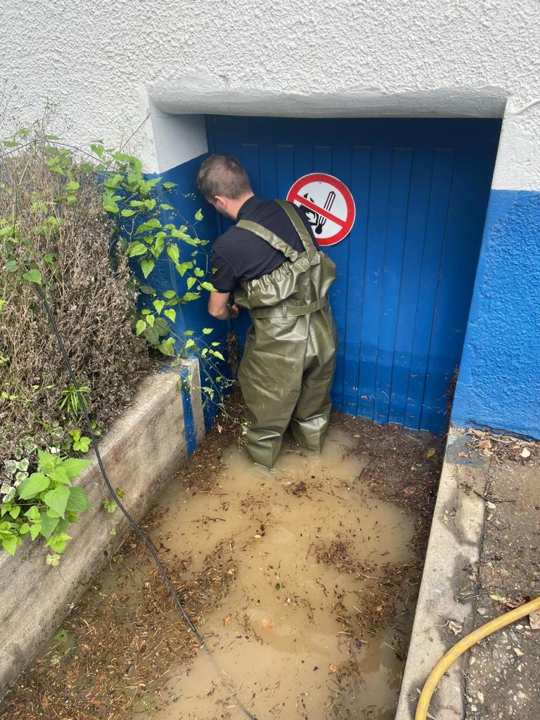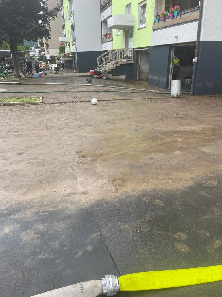 Gemeinsam mit dem Führungsdienst der Feuerwache und dem Zugführer West wurde die Einsatzstelle priorisiert. Schnell wurde deutlich, dass die Löschgruppe nicht ohne weitere Unterstützung auskam. Es wurde umfangreich nachalarmiert. Über den ganzen Tag wurde aus den Wohnhäusern Wasser gepumpt.