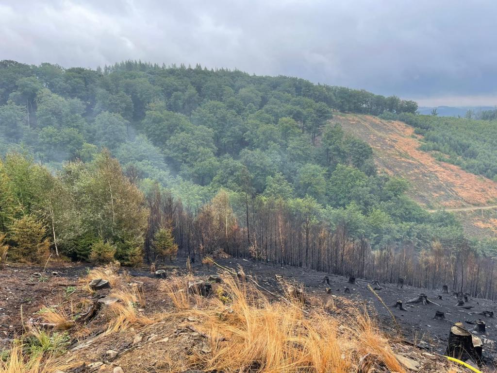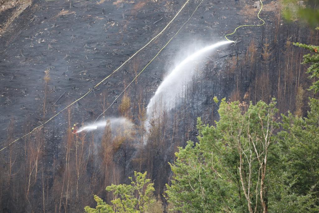 Am Morgen entfachte das über die Nacht unter Kontrolle gebrachte Feuer am Hegenscheid erneut.