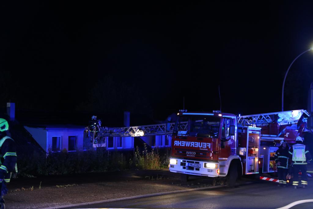 Gegen 2:10 Uhr meldeten Anrufer über den Notruf 112 Rauch und Flammen aus einem Gebäude am Hombrucher Weg. Es wurde der Löschzug der Berufsfeuerwehr sowie die Löschgruppen Bremke und Iserlohner Heide alarmiert. Als die ersten Kräfte an der Einsatzstelle eintrafen, brannte ein Teil des Dachstuhls bereits in voller Ausdehnung. Umgehend wurde das Einsatzstichwort von Feuer1 auf Feuer2 erhöht, was die Nachalarmierung weiterer Kräfte der Freiwilligen Feuerwehr mit sich brachte.