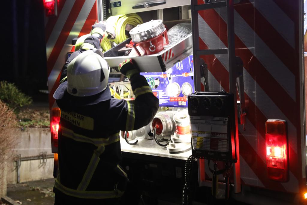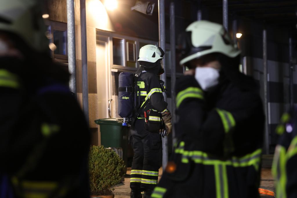 Während des laufenden Einsatzes an der Aucheler Straße wurde die Drehleiter der Löschgruppe zu einem Folgeeinsatz abgezogen.