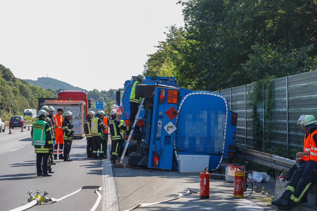 Der Feuerwehr Iserlohn wurde ein Verkehrsunfall mit ABC gemeldet. Die Meldung beinhaltete, dass ein Tanklastzug in der Ausfahrt Letmathe verunfallt war und das Fahrzeug umgekippt sei.