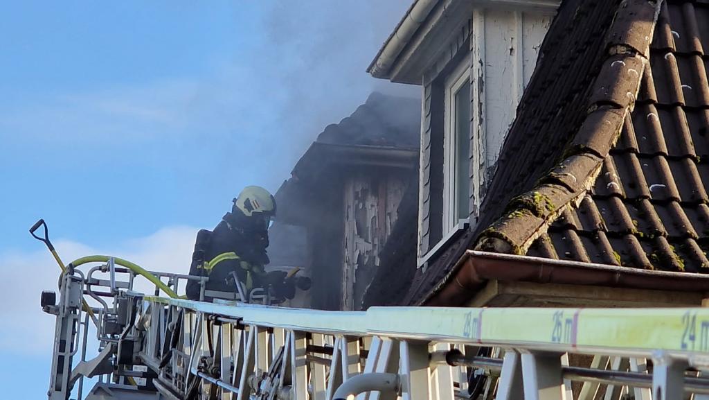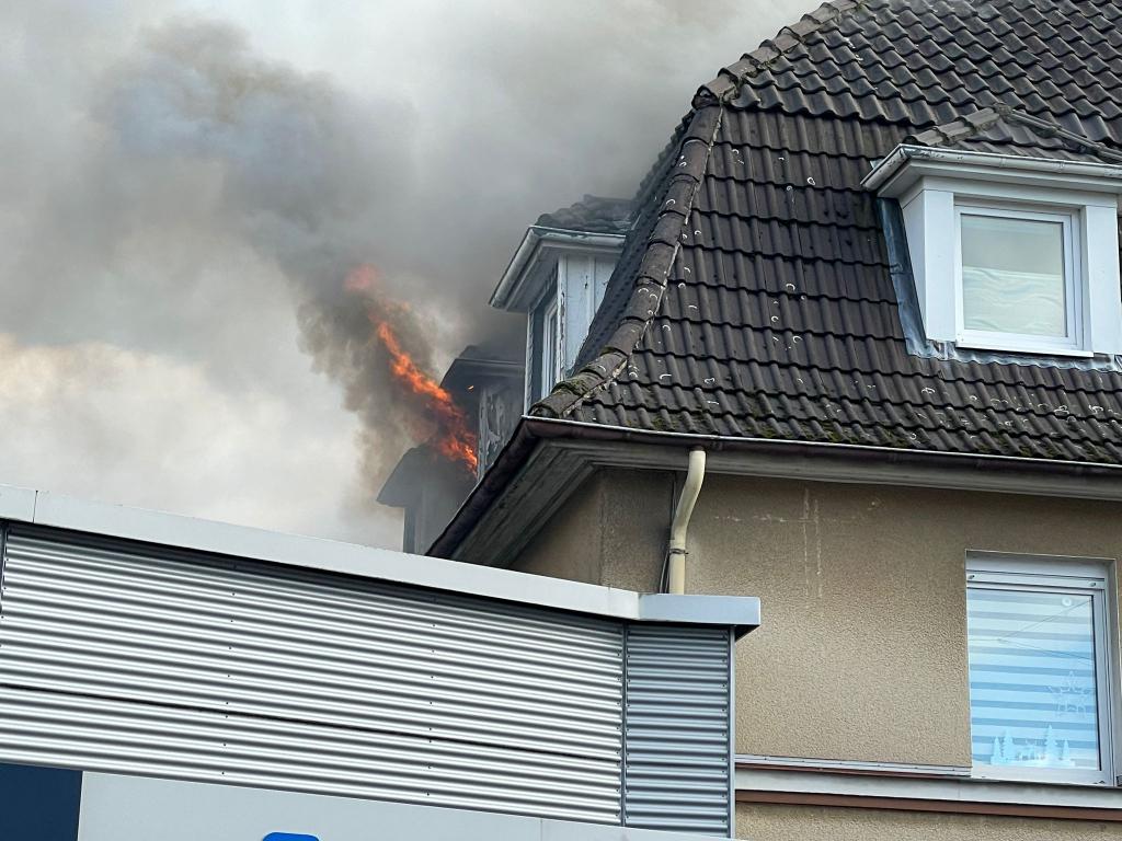 Die ersten Kräfte der Löschgruppe die an der Einsatzstelle eintrafen konnten die Meldung bestätigen. In einem Mehrfamilienhaus an der Hagener Straße war es zu einem Brand in einer Küche im 2. OG gekommen. Das Feuer entwickelte sich schnell auf mehrere Zimmer und ein Teil des Daches.