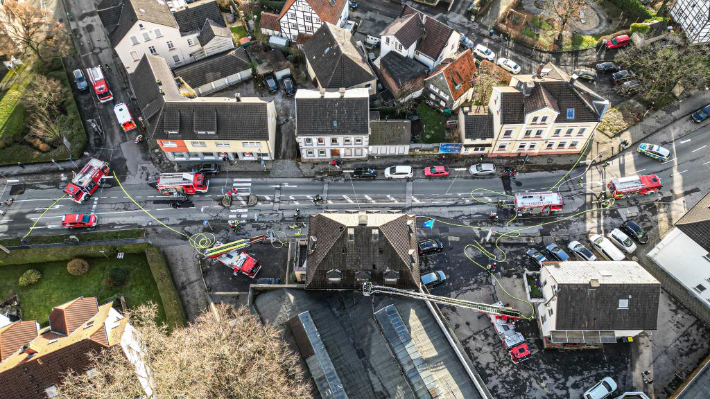 Die Erkundung ergab weiter, dass sich keine Personen mehr im Gebäude aufhielten und keine Personen zu Schaden kamen. Im rückwertigen Bereich drang dichter Rauch und Flammen aus dem Fenster im 2. OG.