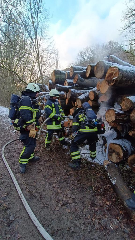 Vor Ort konnte ein brennender Baumstumpf festgestellt werden. Durch das TLF wurde ein Schaumteppich gelegt.