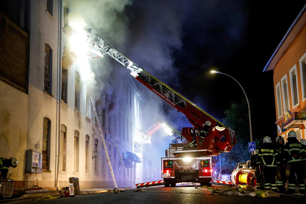 Vor Ort eingetroffen mussten mehrere Personen über Steckleitern und über 2, im späteren Verlauf über eine dritte Drehleiter, gerettet werden.