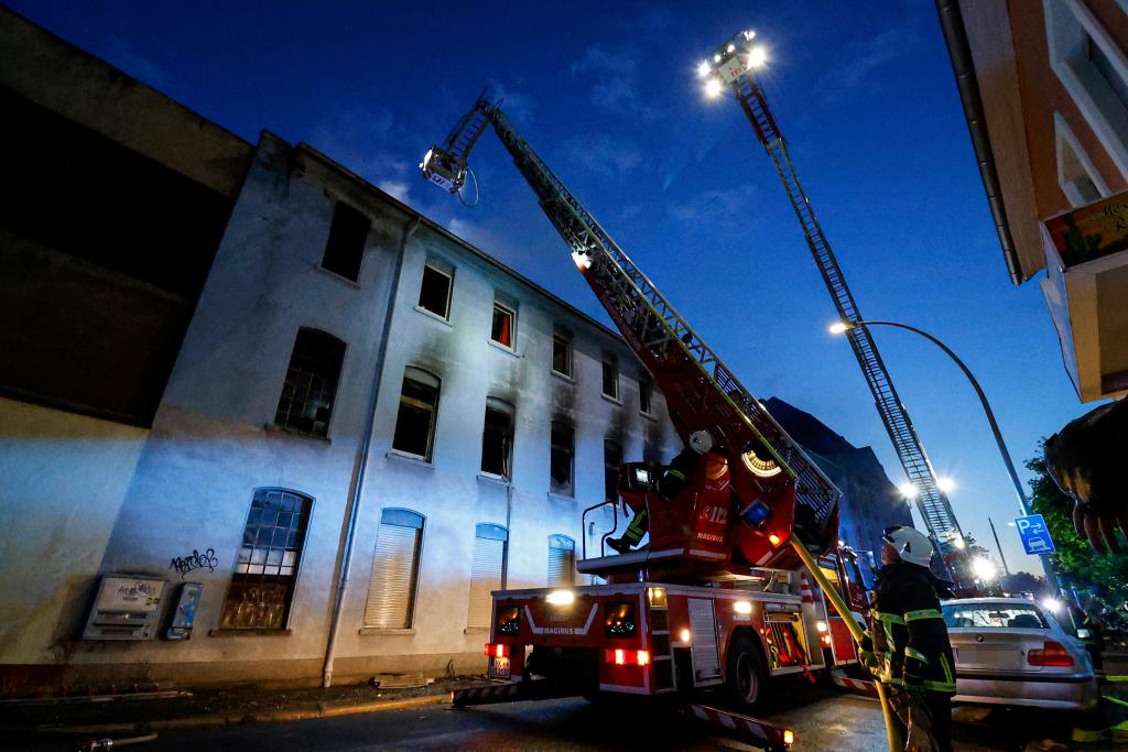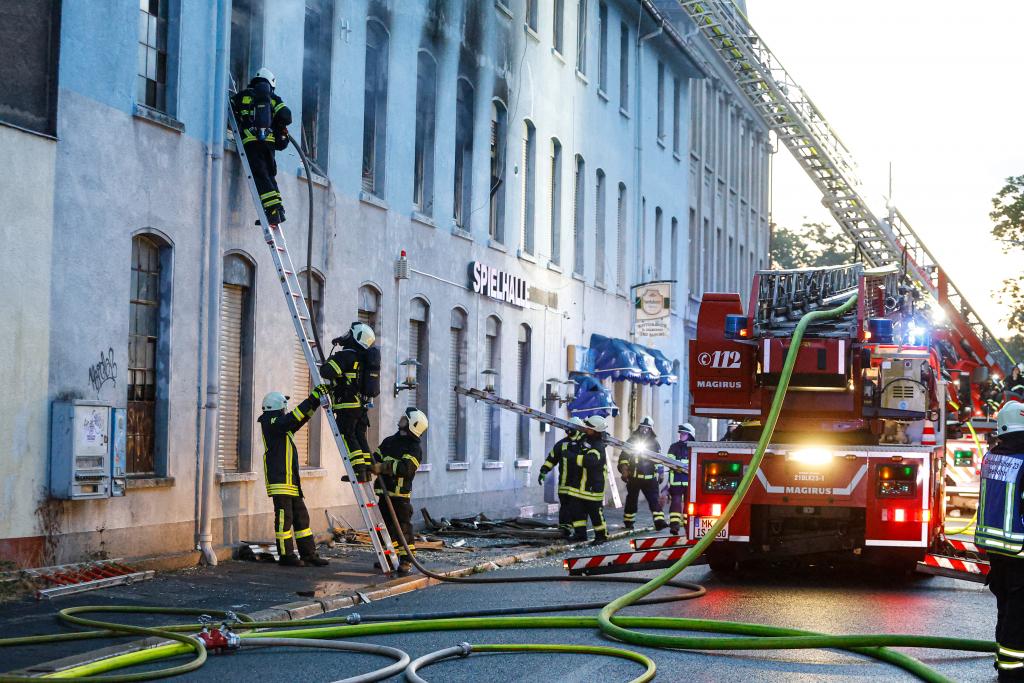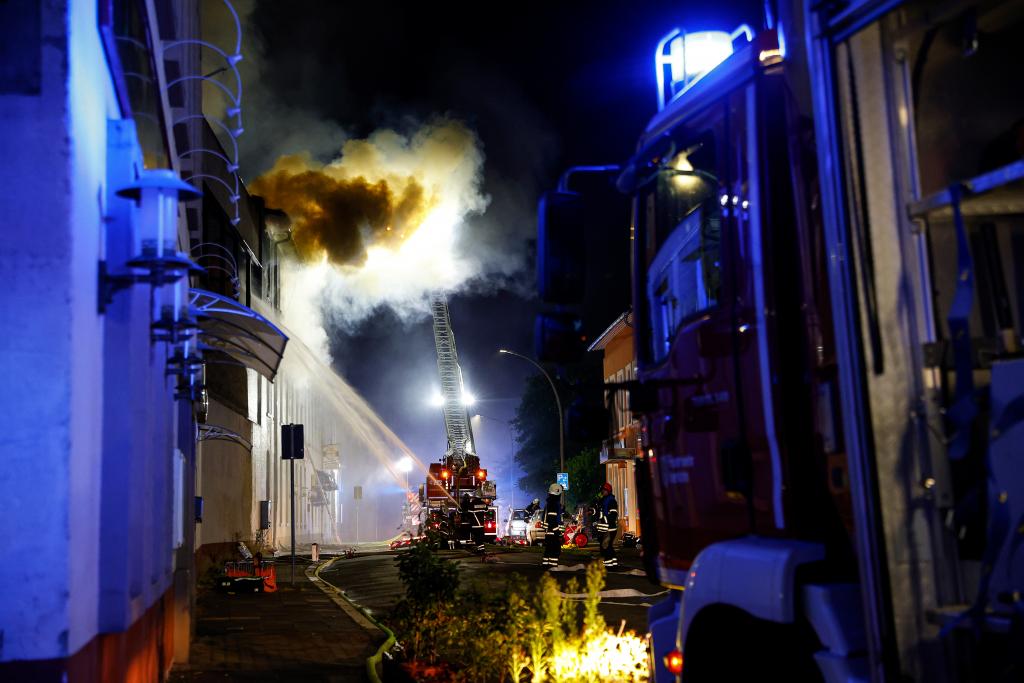 Über mehrere Stunden hinweg wurde das Feuer über die Drehleitern in verschiedenen Gebäudeteilen sowie dem zwischenzeitlich ebenfalls den Flammen zum Opfer gefallenen Dach bekämpft und Zugänge zu verdeckten Glutnestern geschafften.