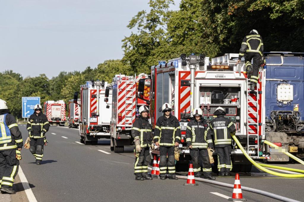 Am 24.06. wurde die Löschgruppe Letmathe zusammen mit dem Löschzug der Berufsfeuerwehr sowie der Polizei und weiteren Einheiten der Feuerwehr Iserlohn zur BAB 46 Fahrtrichtung Hagen alarmiert. Vor Ort wurde durch die Berufsfeuerwehr bereits ein Löschangriff vorgenommen. Wir unterstützten mit unserer Drehleiter sowie unserem Tanklöschfahrzeug. Nach ca. 1 Stunde konnten wir die Einsatzstelle wieder verlassen.