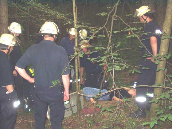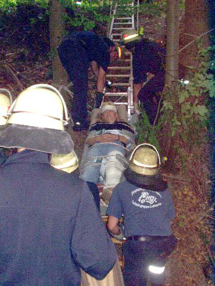 Es mußte die Erstversorgung und das Retten der Person aus unwegsamen Gelände mit den eigenen Mitteln bewältigt werden.