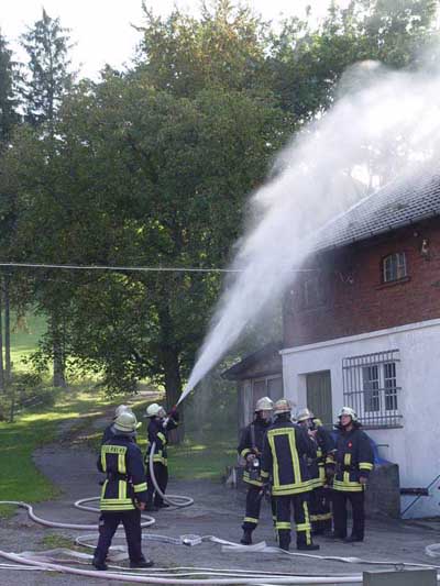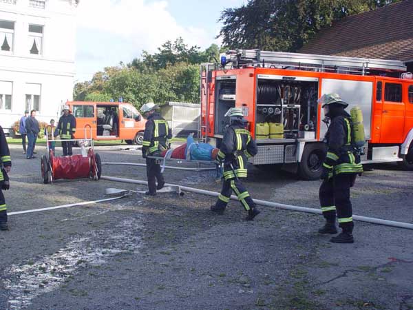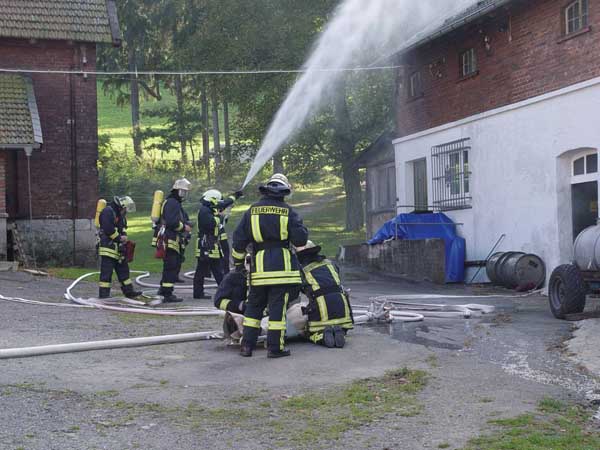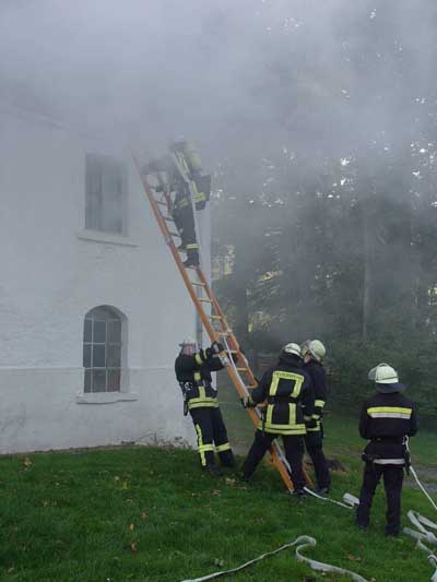 Angenommene Lage war ein Feuer in der Distille auf Gut Honsel mit 2 vermisten Personen. Das Übungsobjekt wurde von Familie Schulte-Hemming zur Verfügung gestellt.
