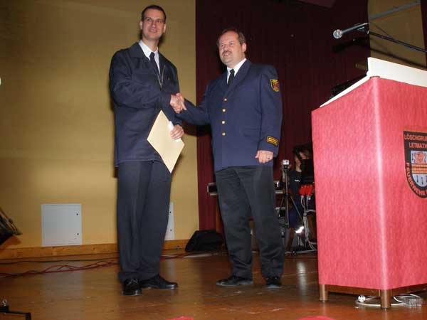 Der Festakt wurde geprägt von erfrischend kurzen Reden, der Überreichung von Präsenten und der Verteilung von Geschenken an die aktiven Mitglieder und die Alters- und Ehrenabteilung der Löschgruppe Letmathe. Hier gab es eine hochwertige Uhr mit dem Stadtwappen von Letmathe.