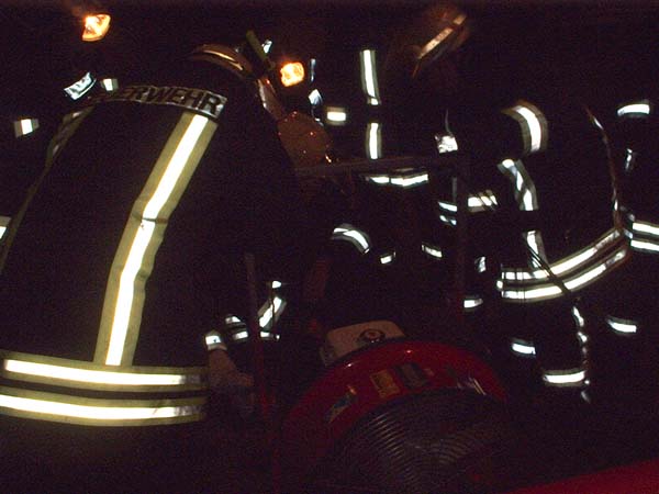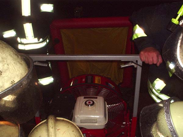 Zuerst wurde die neue Luftleithaube ausprobiert, die neu beim Lüfter auf der DLK verlastet ist. Diese dient dazu den Luftstrom des Lüfters umzulenken um so Schächte oder Kelleräume zu belüften.