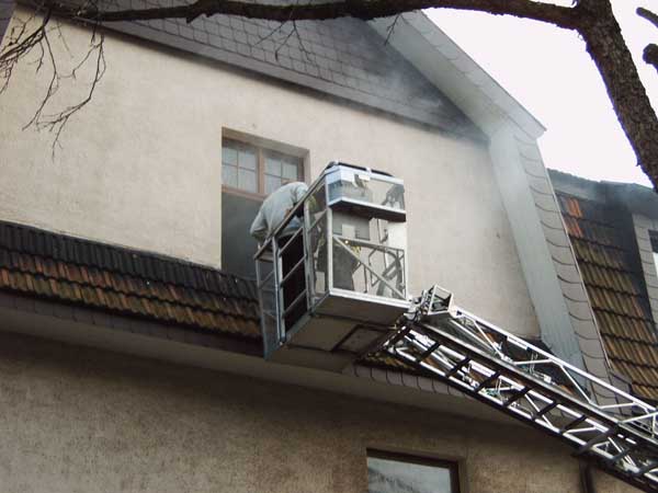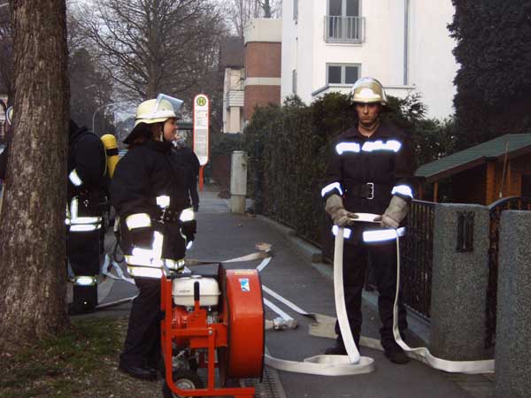 Nachdem alle Personen in Sicherheit gebracht waren wurde das Gebäude mittels Überdrucklüfter vom Rauch befreit.