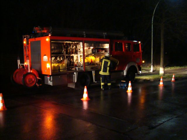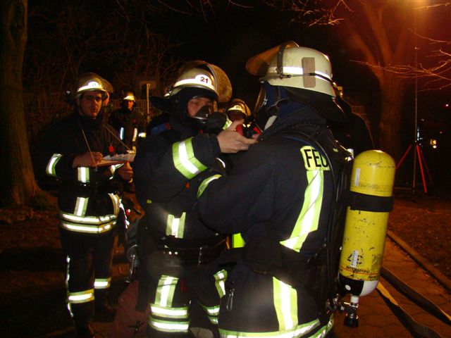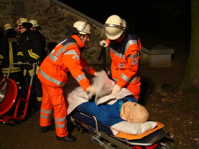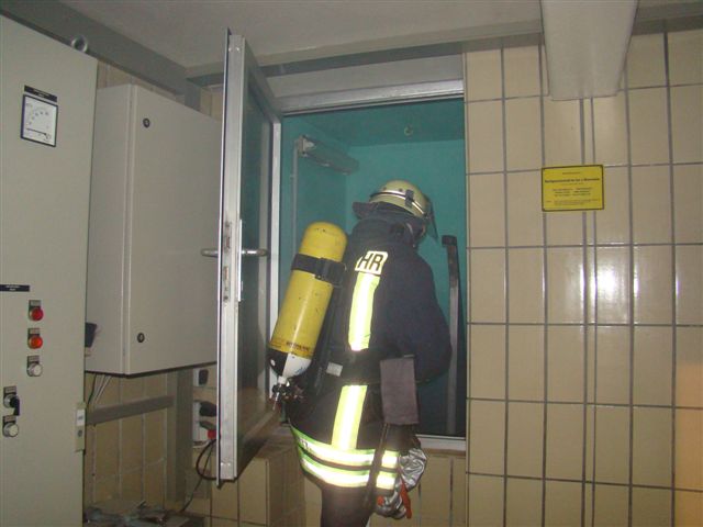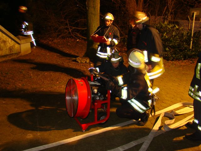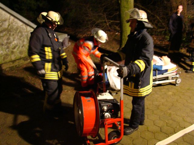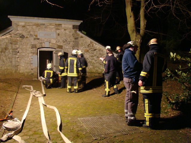 Am Freitag, den 22. Februar 2008 übte die Löschgruppe zusammen mit dem Deutschen Roten Kreuz während des Übungsdienstes am stillgelegten Hochbehälter der Stadtwerke Iserlohn an der Oestricher Straße. Angenommene Lage war ein Betriebsunfall mit anschließendem Brand und zwei vermissten Personen. Hierzu gingen zwei Trupps unter Atemschutz zur Menschenrettung und Brandbekämpfung vor. Die zwei vermissten Arbeiter wurden schnell gefunden, gerettet und dem Deutschen Roten Kreuz zur Weiterbehandlung übergeben. Die Einsatzstelle wurde wegen der Dunkelheit mit Scheinwerfern großzügig ausgeleuchtet. Im Anschluss aller getroffenen Maßnahmen wurde der Behälter noch mit dem Überdrucklüfter belüftet. Da der Hochbehälter über keine Abluftöffnung verfügt, wurden an dieser Stelle Saugschläuche eingesetzt. Über die Saugschläuche wurde der Rauch (Diskonebel) nach außen geführt.
