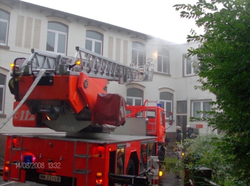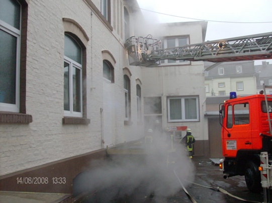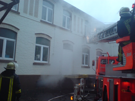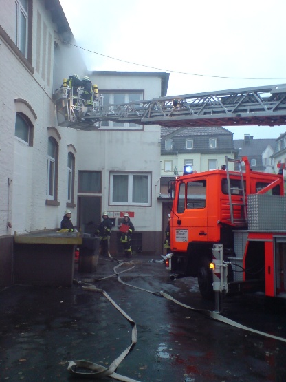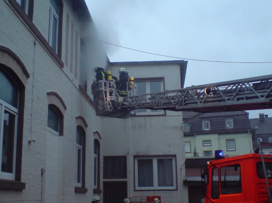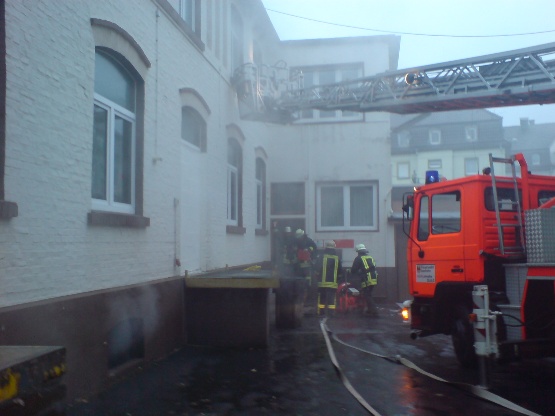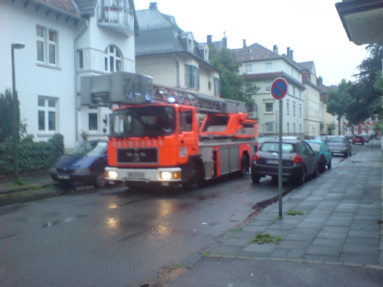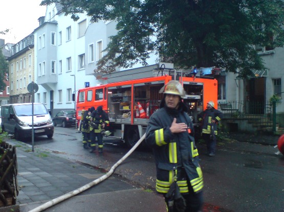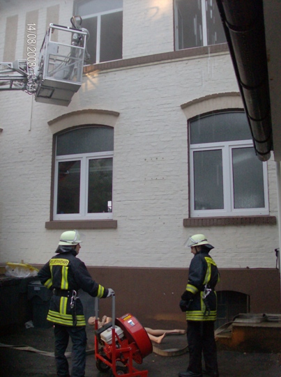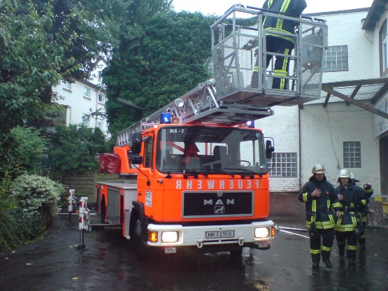 Vorgegebene Lage war ein Kellerbrand bei Firma B&D Technische Bautrocknung GmbH in der Galmeistr.23 mit starker Rauchentwicklung bis ins erste Obergeschoss und 3 vermissten Personen.Die Erkundung ergab das eine Person im ersten Obergeschoss am Fenster stand und um Hilfe rief.Diese Person wurde über die Drehleiter gerettet. 2 Trupps unter PA retteten 2 Personen aus dem Keller und gingen anschließend zur Brandbekämpfung weiter vor.Ein weiterer Trupp stieg über die Drehleiter ins Gebäude und nahm die Brandbekämpfung im Obersgeschoß auf,da dort durch die heißen Rauchgase Kartonage in Brand geraten war.Nach dem das angenommene Feuer unter Kontrolle war und Abluftöffnungen geschaffen waren wurde das Gebäude mit einem Hochdrucklüfter belüftet.Trotz der Enge im Hinterhof war die Übung für alle Einsatzkräfte eine Herausforderung,es wurde alles zufrieden stellend abgearbeitet.