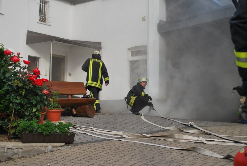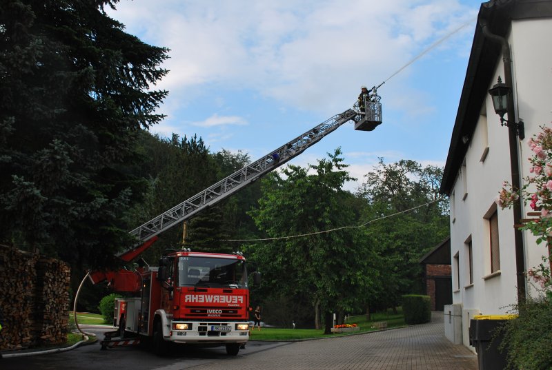 An einem Wohnhaus "Im Kump" fand die zweite Zugübung des Jahres statt. Aufgabe der Löschgruppen Letmathe und Stübbeken war es eine Menschenrettung unter Atemschutz durchzuführen, eine Wasserversorgung aus einem nahegelegenem Teich aufzubauen und eine Brandbekämpfung durchzuführen. Zur Brandbekämpfung wurde unter anderem die Drehleiter mit dem Wenderohr eingesetzt.