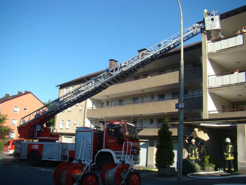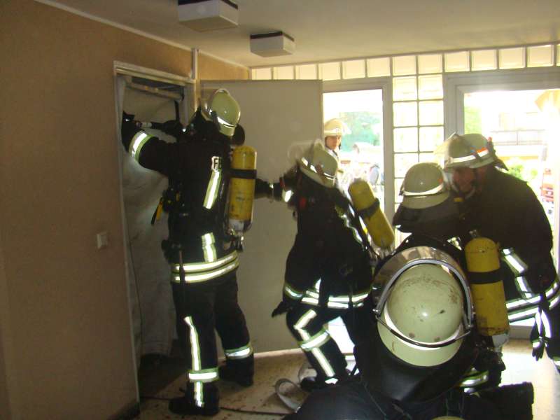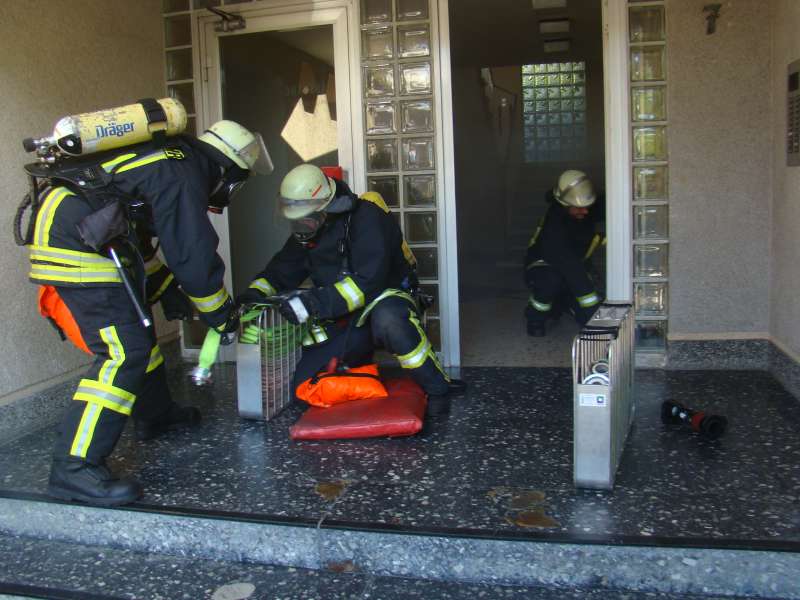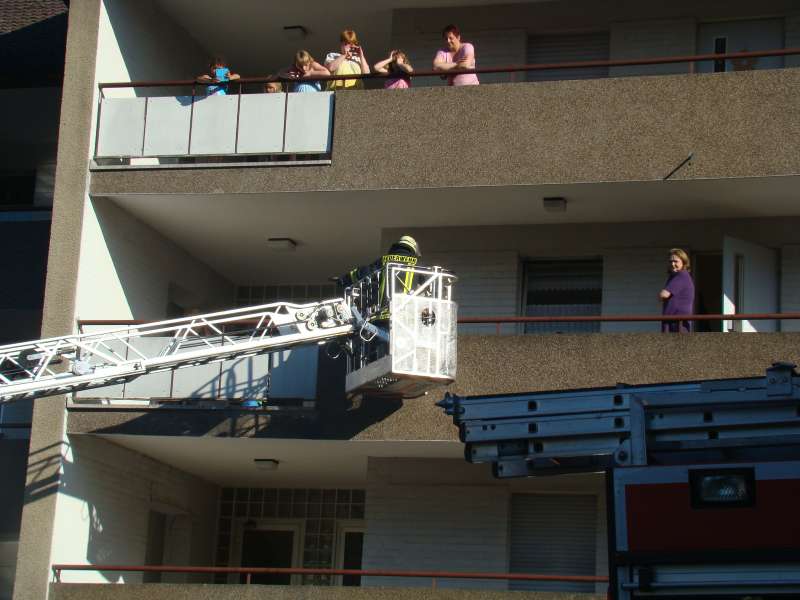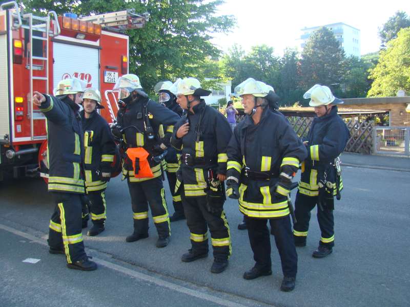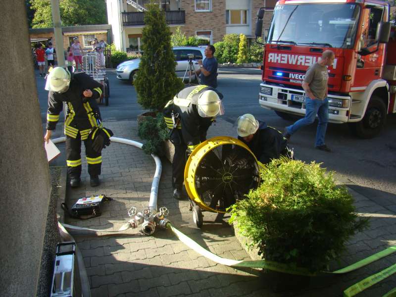 Beim Übungsabend am 04.06.2010 sorgte die Löschgruppe für viel Aufsehen bei den Anwohnern der Straße im Markenfeld. Unter den Augen zahlreicher Personen galt es Personen aus oberen Stockwerken zu retten, den Treppenraum des Wohnhauses als Fluchtweg rauchfrei zu halten und eine vermisste Person im verrauchten Keller zu suchen.