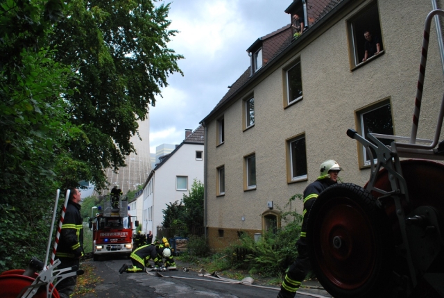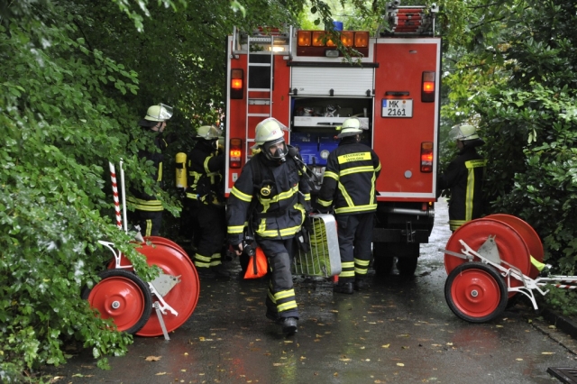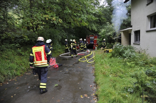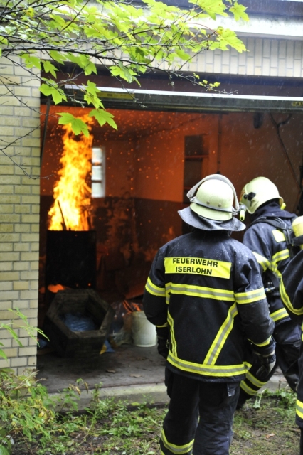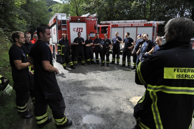 Am frühen Samstagmorgen machten sich 23 Einsatzkräfte von der Löschgruppe Letmathe und der Berufsfeuerwehr Iserlohn auf den Weg in den Südkreis um einen gemeinsamen Übungstag zu verbringen. Begleitet wurden die Feuerwehrleute durch einen Rettungswagen vom Deutschen Roten Kreuz. Ziel war der Werdohler Ortsteil Elverlingsen, eine ehemalige Wohnsiedlung die sich in unmittelbarer Nachbarschaft des Kohlekraftwerkes befindet. Bei der Wohnsiedlung handelt es sich um mehrere Straßenzüge mit rund 35 Wohngebäuden die sich im Besitz des Energieversorgers Mark E befinden. Fast alle Gebäude sind ungenutzt und sollen in naher Zukunft abgerissen werden. Optimale Gegebenheiten um realitätsnahe Feuerwehrübungen abzuhalten.