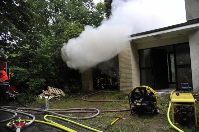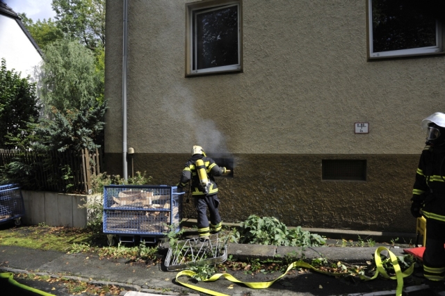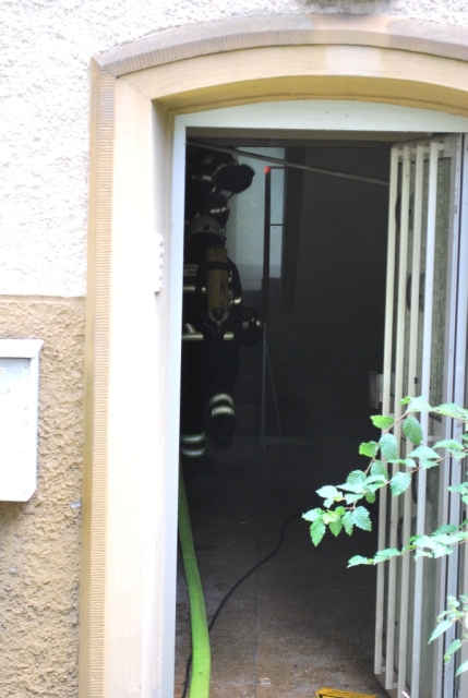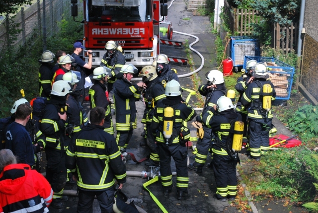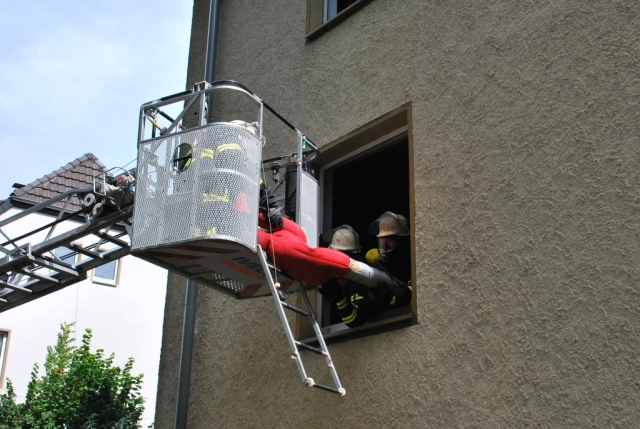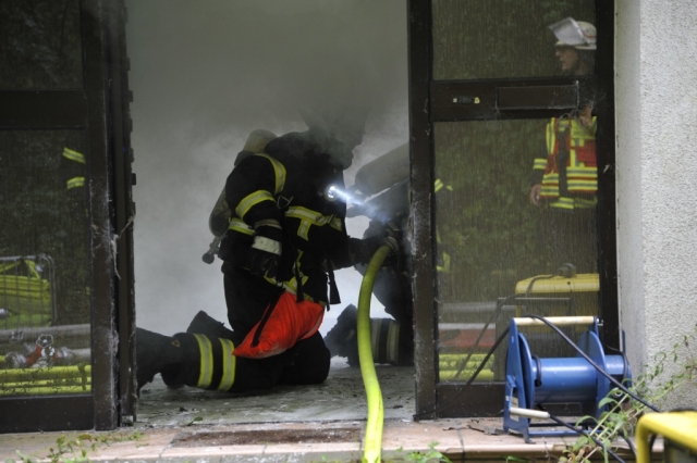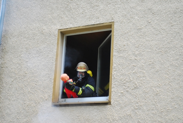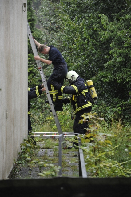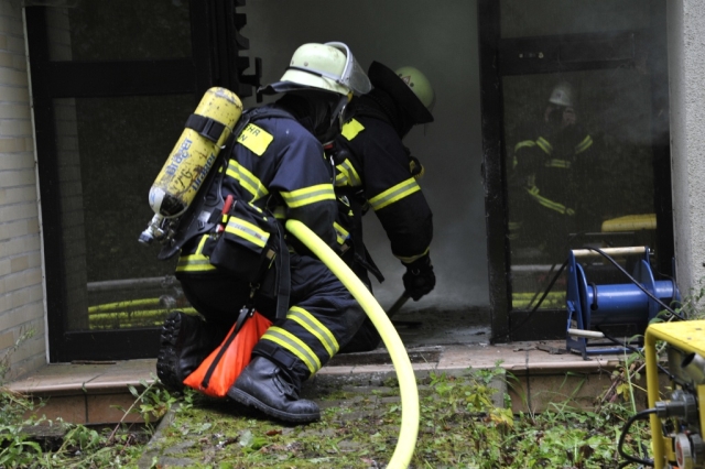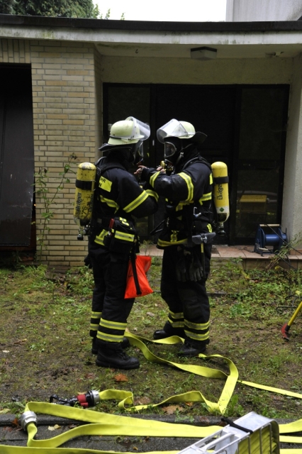 Als zweites Objekt diente ein Mehrfamilienhaus. Im Keller des Hauses war es zu einem Kellerbrand gekommen. Auch bei dieser Übung, bei der ein Holzfeuer im Keller brannte, waren Personen durch den Rauch gefährdet und mussten gerettet werden. Anschließend machten sich die Einsatzkräfte an die Brandbekämpfung im Keller. Hierbei glich der Kellerraum einem Backofen und zeigte den Trupps eindrucksvoll die Grenzen ihrer Ausrüstung auf.