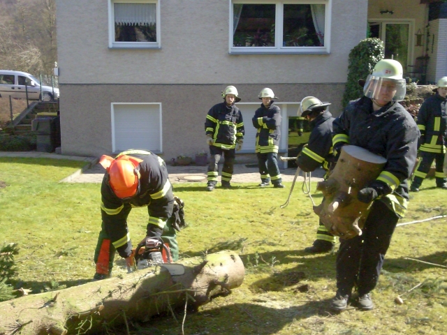 Am 19.03.2011 wurde ein Sonderdienst zum Thema Kettensäge durchgeführt. Bei bestem Wetter und frühlingshaften Temperaturen wurden mehrere Bäume gefällt und so die Handhabung mit der Kettensäge geübt. Nach einer intensiven Reinigung der eingesetzten Geräte war der Dienst dann um 16:00 Uhr beendet.