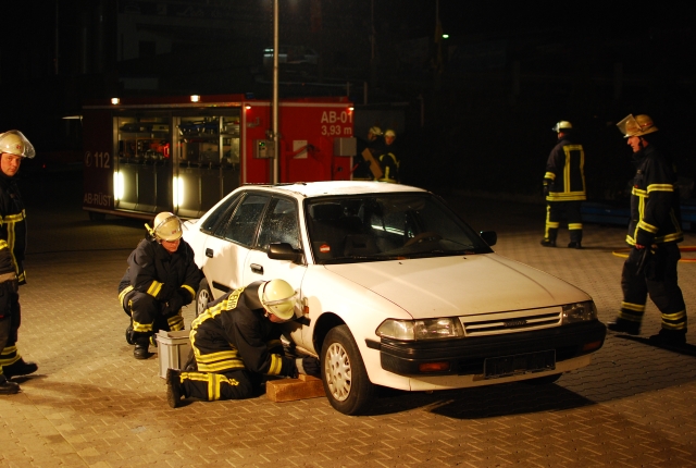 Am Freitag, den 18.03.2011 traf man sich um 19:00 Uhr zum Übungsdienst und bildete sich im Thema Unfallrettung weiter. Wegen der bereits einsetzenden Dunkelheit musste das Übungsgelände am Stenglingser Weg zu erst mit Flutlichtscheinwerfern ausgeleuchtet werden. Anschließend wurde ein ausgedienter PKW mit hydraulischen Rettungsgeräten in seine Einzelteile zerlegt. Hierbei wurde die Handhabung der einzelnen Geräte vertieft und Schnitttechniken am PKW ausprobiert.