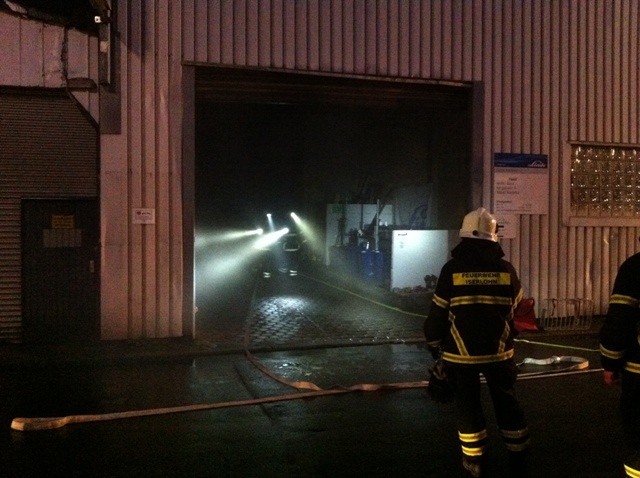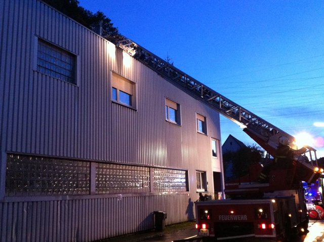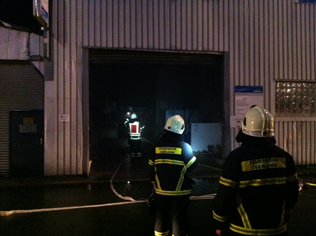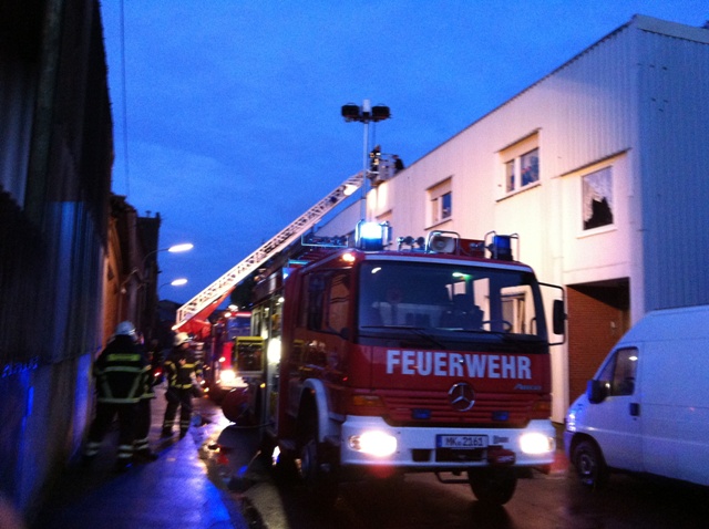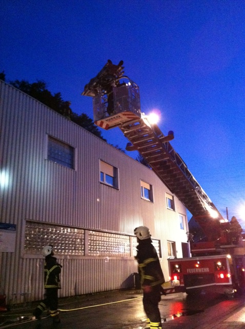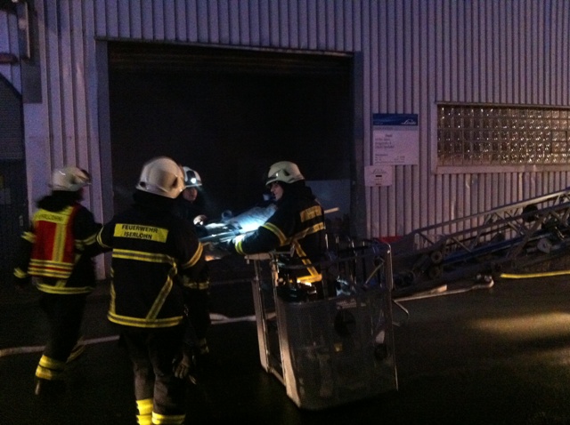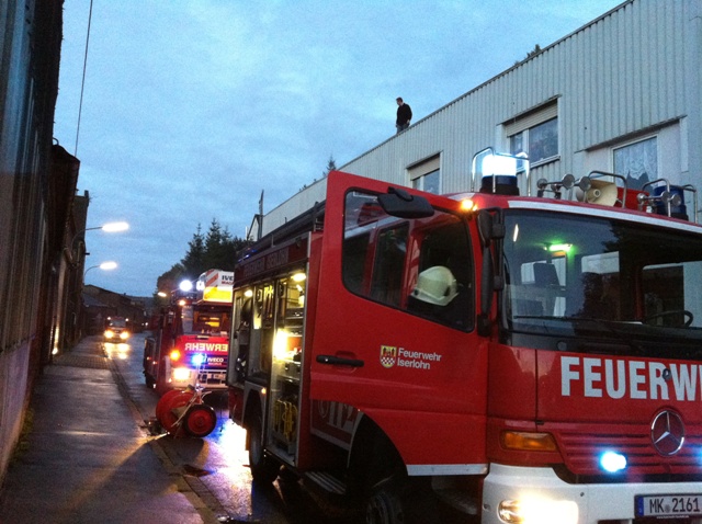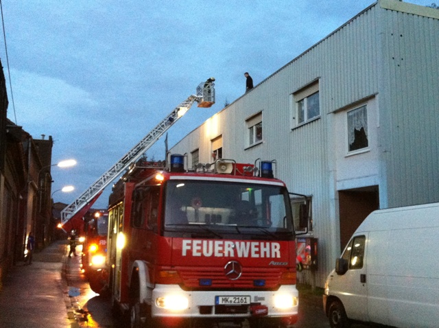 Ein unklares Feuer bei der Firma Faust Technische Gase im Ortsteil Genna in der Bergstr. stellte die Übungslage am heutigen Übungsdienst dar. Beim eintreffen der Löschgruppe Letmathe war eine Rauchentwicklung aus dem hinteren Gebäudeteil zu erkennen. Die weitere Erkundung ergab das 2 Personen sich auf das Firmendach geflüchtet hatten, davon war eine Person gestürtzt und verletzt. Eine weitere Person sollte sich noch in der verrauchten hinteren Halle aufhalten. Während der erste Angriffstrupp unter Atemschutz zur Menschenrettung in die hintere Halle vor ging, wurde die Rettung der Personen vom Hallendach über die Drehleiter durchgeführt. Ein zweiter Angriffstrupp unter Atemschutz unterstützte die Menschenrettung in der Halle. Nach dem alle Personen gerettet waren und das Übungsfeuer gelöscht wurde, war Übungsende.