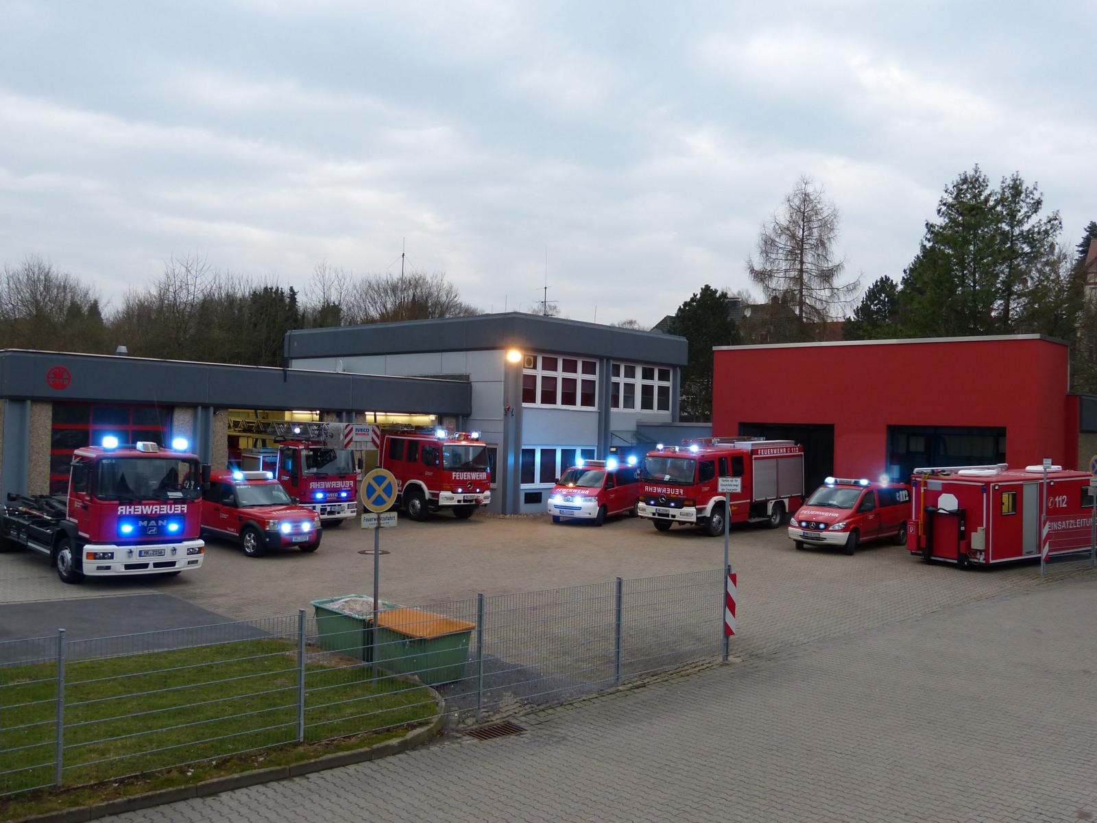 6 Fahrzeuge wurden im Stadtgebiet Letmathe eingesetzt. Diese erhielten ihre Einsatzaufträge vom Abrolbehälter Einsatzleitung der am Gerätehaus in Stellung gebracht wurde.