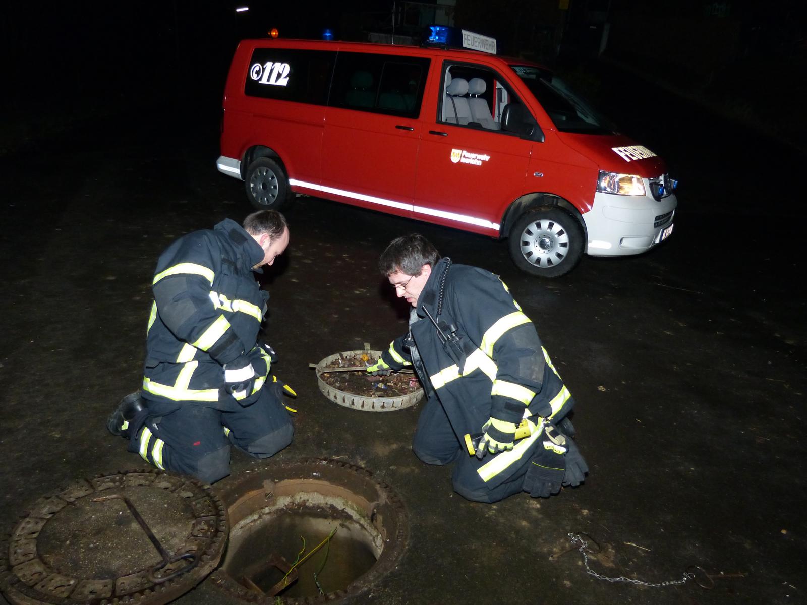 Im Laufe der Übung mussten Steckleiterteile und Drehleiter in Stellunggebracht werden und ein Container angehoben werden. Weitere Hinweise und Aufgaben wurden in eine Regen Revisionsschacht versteckt