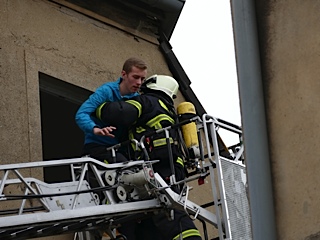Mehrere Personen befanden sich in dem Praxis- und Wohngebäude, denen der Fluchtweg durch das Treppenhaus auf Grund der Brandrauchausbreitung abgeschnitten war.