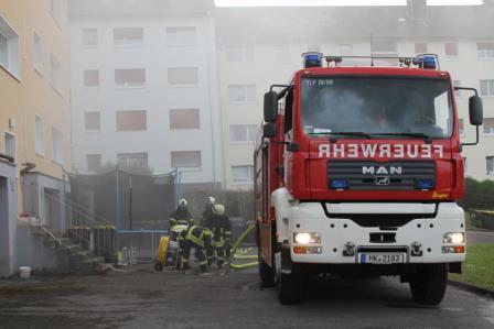 Bei der Löschgruppe Letmathe stand am Freitagabend eine Funkübung auf dem Dienstplan. Hierzu kam dem diensthabenden Mirko Matull die Idee einen Einsatzablauf zu planen, in dem eine Abschnittsbildung sinnvoll wird. Zu diesem Zweck rücken die Einheiten in verschieden Straßen im Ortsteil Letmathe aus. Die Sondereinheit Funk besetzte in der Zwischenzeit den Abrollbehälter Einsatzleitung. Eröffnet wurde die Übung, in dem das von der Löschgruppe Stadtmitte geliehenes Tanklöschfahrzeug (TLF 4000) den Einsatzauftrag bekam: Feuer 0 Mülleimerbrand hinter dem Haus der Breslauer Straße 18. Der TLF Führer fand mehre brennende Mülltonnen vor, die direkt an einem Mehrfamilienhaus standen. Diese wurden mittels einer Nebelmaschine so stark verraucht, dass der TLF Führer das Alarmstichwort auf Feuer 1: Feuer am Gebäude erhöhte. Daraus resultierend wurde das Hilfeleistungslöschfahrzeug, Drehleiter, Einsatzleitwagen und ein Rettungswagen in die Breslauer Straße geschickt. Zusätzlich wurde das TLF mit einem Mannschaftstransportfahrzeug unterstützt. Das Feuer von den Mülleimern hat sich durch einem Lüftungsschacht in einem Kellerraum ausgebreitet. Bewohner des Mehrfamilienhauses standen auf den Balkonen und mussten aufgrund des verrauchten Treppenhauses gerettet werden. Hierfür wurden die Drehleiter und Steckleitern eingesetzt. Aus diesem Grund wurde vom Einsatzleiter auf Feuer 2 erhöht. Als nächstes wurde der befreundete Löschzug 2 Menden Lendringsen mit einem Hilfeleistungslöschfahrzeug und einem weiteren Rettungsmittel in die Breslauer Straße entsendet. Wegen des hohen Einsatzkräfteaufkommens wurde entschieden, eine Abschnittstrennung einzuleiten. Es wurde der Abschnitt: Gefahrenabwehr, Brandbekämpfung, Menschenrettung, Rettungsdienst sowie ein Führungsfunkkanal eingerichtet. Im nächsten Schritt kam die Sondereinheit Funk hinzu und stellte für die Abschnittsleiter Führungsassistenten und Gehilfen. Die Brandbekämpfung wurde in der Zeit fast abgeschlossen. Insgesamt sind 7 Anwohner von den Balkonen und 3 Dummys aus dem Treppenraum sowie dem Dachstuhl gerettet worden. In der Übung waren 38 Einsatzkräfte mit 10 Fahrzeugen involviert. Einen besonderen Dank gilt den Bewohnern des Hauses der Breslauer Str. 18, die ihren häuslichen Frieden durch dieser Übung einschränken ließen. Die Akzeptanz, dass die Feuerwehr auch in einem bewohnten Haus üben sollte, war sehr hoch und die Einsatzübung hat den Bewohnern auch Freude bereitet.