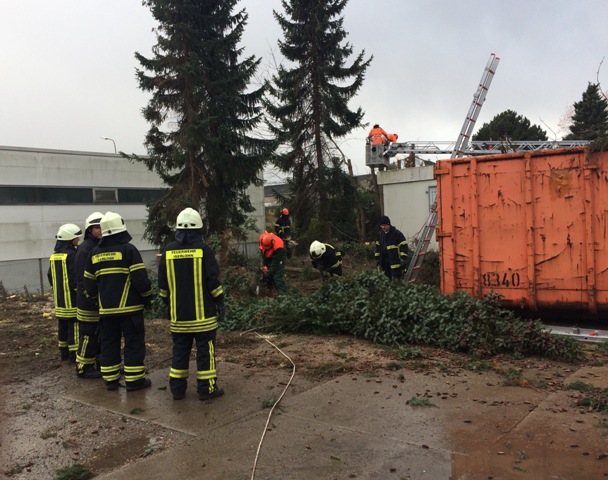 Auch für die Drehleiter gab es Arbeit. Einige Bäume mussten von der Krone aus abgetragen werden.