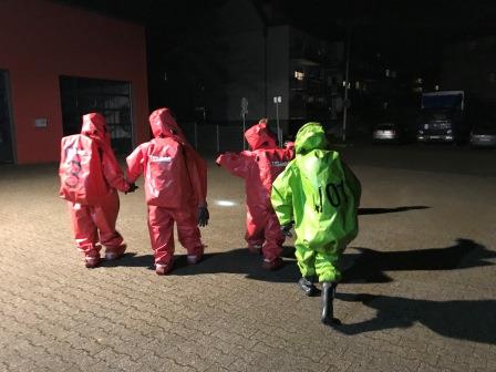 Die ertse Übung in diesem Jahr fand am Gerätehaus am Lennedamm Letmathe statt. Hierzu mussten die Kameradin und Kameraden sich mit einem Chemieschutzanzug (CSA) ausrüsten. Verschiedene Aufgaben wurden trainiert wie zum Beispiel das festziehen von Rohschellen oder Montage von Schrauben und Muttern.
